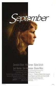 September is a 1987 film written and directed by Woody Allen. Allen's intention for September was that it be like "a play on film," hence the great number of long takes and few camera effects.