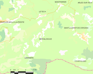 Serralongue is located in the canton of Prats-de-Mollo-la-Preste and in the arrondissement of Céret.