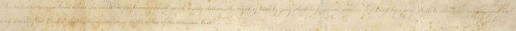 In Suits at common law, where the value in controversy shall exceed twenty dollars, the right of trial by jury shall be preserved, and no fact tried by a jury, shall be otherwise re-examined in any Court of the United States, than according to the rules of the common law.[2]