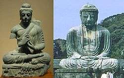 - ↑ "Needless to say, the influence of Greek art on Japanese Buddhist art, via the Buddhist art of Gandhara and India, was already partly known in, for example, the comparison of the wavy drapery of the Buddha images, in what was, originally, a typical Greek style" (Katsumi Tanabe, "Alexander the Great, East-West cultural contacts from Greece to Japan", p19)