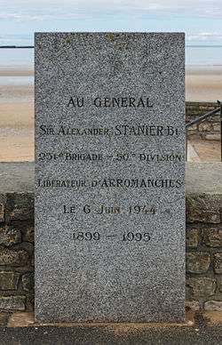 Brigadier Sir Alexander Beville Gibbons Stanier, 2nd Baronet of Peplow Hall DSO & Bar, MC (31 January 1899 – 10 January 1995) was a British Army officer who fought in the World War I and World War II, particularly distinguished for his actions at Boulogne in 1940, on D-Day in 1944, and in the Rhineland in 1944.[6]
