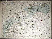 The Atlas Coeli was created in the period 1947-1948 at the Skalnaté Pleso Observatory in Slovakia (then Czechoslovakia) under the direction of Antonín Bečvář, based on an idea of Czechoslovakian amateur astronomer Josef Klepesta.[3] Much of the work was carried out by a volunteer group of students at the Observatory; the final plotting of the Atlas, which was entirely hand-drawn, was the work of Bečvář. Positional and magnitude data were taken from a number of existing catalogs, including the Henry Draper catalog, the Aitken New General Catalog of Double Stars, and the Boss General Catalog. About ten photographic atlases were used as well. To plot each of the objects, one of 20 stencil patterns was selected and positioned. It was also necessary to compute the shift in the apparent position of each of the objects to epoch 1950.0. About 3,000 man-hours of work were involved.[3]