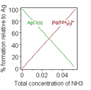 - AgCl(s) + 2 NH3(aq) ⇌ [Ag(NH3)2]+(aq) + Cl−(aq)
