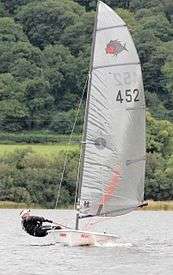 The mast is a sealed section with a halyard running inside the track to help prevent inversion on capsize. The mast has single spreaders and lower shrouds to allow adjustment for different helms and conditions. The forestay is adjustable to allow depowering in conjunction with a cascade style kicker. A pivoting centreboard and rudder are made of moulded glass fibre construction. The laminate sails are available in two cuts to suit different sailors.[6]