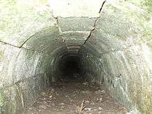 During excavations a drainage culvert was discovered about 20 metres (66 ft) west of Terminus bridge.[30] Work resumed in September and November 2014 to batter and reshape the canal embankments. Excess topsoil was removed and the towpath reinstated on the stretch to the east from Terminus bridge for about 200 metres (660 ft). On the same stretch a retaining wall was discovered in the south embankment continuing for about 100 metres (330 ft), possibly built as a repair to a weak section of canal banking. Vertical infills of white clay have been used along this wall.