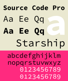 Source Code Pro is a monospaced sans serif typeface created by Paul D. Hunt for Adobe Systems. It is the second open-source font family from Adobe, distributed under the SIL Open Font License.[1]