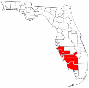 Southwest Florida is the region along the south west gulf coast of the U.S. State of Florida. Definitions of the region vary, though its boundaries are generally considered to put it south of the Tampa Bay area, west of Lake Okeechobee, and mostly north of the Everglades and to include Manatee, Sarasota, Charlotte, Lee, and Collier counties. For some purposes, the inland counties of DeSoto, Glades, and Hendry, and the thinly populated mainland section of Monroe County, south of Collier, are also included.