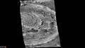 Stair-stepping mesas in interior deposit of Spallanzani Crater, as seen by THEMIS. | |