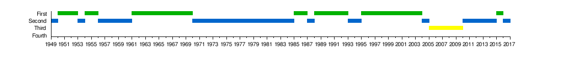 - 1949, 1953, 1960, 1984, 1987, 1994, 2014