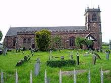In about 1300 a sandstone church was built on the site of the monastery. The chancel from this building is still extant. The church was restored between 1723 and 1726 by Richard Trubshaw; this restoration included the bell tower. The north aisle was altered in 1832.[4] The architect John Douglas was married in the church in 1860 and in 1868 he carried out a restoration of the church.[5] This included the extension of the south aisle to form a baptistery[4] and restoration of the chancel.[6] Douglas carried out a further restoration in 1877 which included the addition of a half-timbered porch.[5] In 1913 the vestry was built and the organ was repositioned.[4]