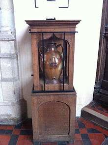 An unusual item in the church is the gotch, a beer jug presented to the bell ringers in 1729 by the vicar, Matthew Bell. It is nearly 20 inches (51 cm) high and has a capacity of 32 imperial pints (18 l). It has a pun in its inscription campana sonant canore ("the bells ring in harmony"). The bell and crown, embossed upon it, are a reference to the Crown Hotel which was owned by the family of the vicar.