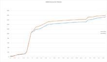 A chart plotting the delegate count in the 2008 Democratic primary election.