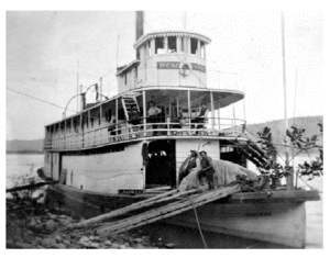 The first motorized vessel on the Peace system was the SS Grahame, built by the Hudson's Bay Company in Fort Chipewyan in the winter of 1882-83.[1] She carried freight 200 miles (320 km) up the Peace to Vermilion Chutes, where the company’s goods were portaged around the rapids and reloaded into a flotilla of scows and canoes for the journey onward."
