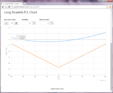 A long straddle involves "going long," in other words, purchasing both a call option and a put option on some stock, interest rate, index or other underlying. The two options are bought at the same strike price and expire at the same time. The owner of a long straddle makes a profit if the underlying price moves a long way from the strike price, either above or below. Thus, an investor may take a long straddle position if he thinks the market is highly volatile, but does not know in which direction it is going to move. This position is a limited risk, since the most a purchaser may lose is the cost of both options. At the same time, there is unlimited profit potential.[1]