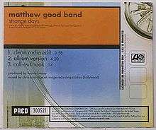 "Strange Days" is the third single from Canadian group Matthew Good Band's third studio album, Beautiful Midnight. The song peaked at #6 on Canada's Rock chart,[1] and is still one the band's most popular songs.