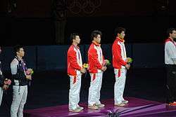 The men's team table tennis event was part of the table tennis programme at the 2012 Summer Olympics in London. The event took place from Friday 3 August to Wednesday 8 August 2012 at ExCeL London.[1] The tournament was a single elimination tournament with a third place playoff played between the two losing semi-finalists.