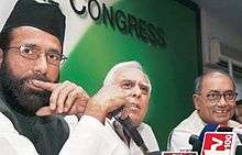 Maulana Tauqeer Raza Khan is a sunni Muslim scholar and politician from Indian state of Uttar Pradesh. He is a descendant (Great-great-grandson) of Ahmad Raza Khan, a Hanafi jurist, and a nephew of Akhtar Raza Khan.[1][2] He is the founder and President of a political party Ittehad-e-Millat Council.[3][4] In May 2013 he was appointed as Vice-Chairman of the State Handloom Corporation of Uttar Pradesh with the rank of minister of state by the Samajwadi Party Govt. He accepted the post on the condition that a probe committee be constituted by the state Govt. to investigate several riots between Hindu and Muslims which took place after Akhilesh Yadav took over as Chief Minister.[5] However in December 2013 he resigned from the post, blaming the Akhilesh Yadav government for its failure to prevent Muzaffarnagar riots. He said, "Had Akhilesh shown strictness at the time of riots in Kosi Kalan in Mathura, the Muzaffarnagar incident would not have taken place."[6]