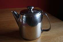 A teapot is a vessel used for steeping tea leaves or an herbal mix in boiling or near-boiling water, and for serving the resulting infusion which is called tea. Dry tea is available either in tea bags or as loose tea, in which case a tea infuser or tea strainer may be of some assistance, either to hold the leaves as they steep or to catch the leaves inside the teapot when the tea is poured. Teapots usually have an opening with a lid at their top, where the dry tea and hot water are added, a handle for holding by hand and a spout through which the tea is served. Some teapots have a strainer built-in on the inner edge of the spout. A small air hole in the lid is often created to stop the spout from dripping and splashing when tea is poured. In modern times, a thermal cover called a tea cosy may be used to enhance the steeping process or to prevent the contents of the teapot from cooling too rapidly.