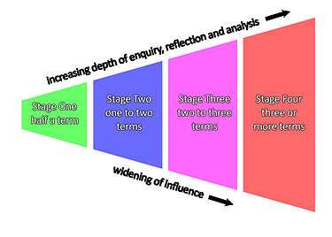 At Stage One the expectation was that the impact of the teacher's work would predominantly be seen in their own classroom. This could be using "an area of interest, teaching strategy or new initiative".[8] Stage one was expected to be carried out for a short period of time (from two weeks to a half term).[8]