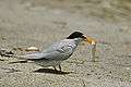 Is the smallest of the American terns and is found nesting on sandy shores of the southern parts of the United States. Small fish are the main staple in their diet.[6] |