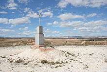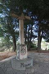 In 1955 the Terç ex-combatant, Salvador Nonell Brú, published its history.[74] The bid to construct a mausoleum located within the Montserrat complex was initially opposed by Franco, who claimed that all the fallen should rest at Valle de los Caídos;[75] the mausoleum was finally opened in 1961.[76] In 1965 a requeté monument was unveiled in front of it;[77] the original site layout was blurred in the decades to come.[78] Commemorating crosses were erected also in Codo and in Vilalba dels Arcs. Today the Mausoleum remains closed and visitors are admitted by individual appointment;[79] it is owned by Hermandad de Ex Combatientes del Tercio de Requeté de Nostra Señora de Montserrat, the organisation founded in the late 1950s.[80]