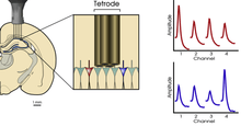 A tetrode is a type of electrode used in neuroscience for electrophysiological recordings. They are generally used to record the extracellular field potentials from nervous tissue, e.g. the brain. Tetrodes are constructed by bundling together four very small electrodes; each wire is generally less than 30 μm in diameter. Tetrodes are used to classify extra-cellular action potentials into sets generated by the individual neurons, as each channel of the tetrode is usually close enough to a cell such that action potentials emitted by that cell are detected on each of the four channels, but because of the spatial distribution of the individual channels, the amplitude of the signal varies across the four channels.