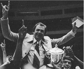 Returning all but one all but one top player and adding some military veterans and players from the freshman team, Gray's 1946–47 Texas team was thought to have a legitimate chance of winning the SWC championship, along with Arkansas, SMU, and defending SWC champion Baylor.[67] Future Naismith Basketball Hall of Fame member and five-time NBA champion guard Slater Martin and forward John Hargis returned to the team to join guards Roy Cox and Al Madsen, who had returned the previous season. All four men, along with three other of that year's letterwinners, had served in the war. Martin, Cox, and Madsen were dubbed the "Mighty Mice."[67] Though the return of Hargis helped, the Longhorns were again a team not possessed of great size, but they did possess great speed and scoring ability. The Longhorns began the season with four blowout wins, the last and closest coming by a score of 46–34 against the Continental Air Liners of Denver. The game against the Air Liners was the last game Texas would play against a semi-professional team, once a routine component of the nonconference schedule, until the 1955–56 season.[67][68] Not content to play only overmatched local teams for the remainder of the nonconference slate, Gray wanted to harden his team for the season ahead, and the Longhorns next embarked upon a 10-day, 4,000-mile train trip to face Canisius in Buffalo, Long Island in New York City, and DePaul in Chicago.[67] Texas defeated Canisius 52–46 before traveling to New York for the most-anticipated contest of the trip, the game in Madison Square Garden against Clair Bee's LIU Blackbirds, who were averaging 90 points per game and had recently defeated defending national champion Oklahoma A&M. In front of a strongly pro-LIU crowd of 18,453, the Longhorns upset the Blackbirds, 47–46. Texas next traveled to Chicago to face the DePaul Blue Demons of Ray Meyer, whose team had won the NIT two years earlier, and won the final game of their road trip in a rout, 61–43.[69] Before returning to Austin, the 7–0 Longhorns stopped in Oklahoma City to play in the All-College Tournament. Texas dominated the Missouri Tigers 65–46 before falling to Oklahoma A&M, the two-time defending national champion, in the semifinal by a single point, 40–39. The Longhorns defeated the Oklahoma Sooners in the third-place game the following night by a score of 62–50.[70] Texas was only occasionally challenged during the remainder of the regular season, winning its three remaining nonconference games by 29, 24, and 12 points and seven of its first 10 conference games by 12 or more points (and the first 10 SWC contests by an average of 16.6 points).[71] The Longhorns entered the final weekend of the conference season needing only one win in two games against the second-place Razorbacks. In front of more than 8,000 fans at Gregory Gym, Arkansas led for most of the first game before Slater Martin led a late surge to secure the win and the outright conference championship for Texas, 49–44.[72] The pressure to win the SWC championship thus relieved, the Longhorns easily dispatched the Razorbacks the following night, 66–46, to finish the regular season 24–1 overall and 12–0 in SWC play for their first undefeated conference season since Doc Stewart's 1923–24 team finished 23–0. Texas traveled to Kansas City to face Wyoming in the first game of the NCAA Tournament. Four players from each team had been on the 1943 teams that faced off in the Final Four on Wyoming's way to the NCAA championship.[72] Texas trailed until the final minutes of the second matchup, and Martin's long shot with 35 seconds remaining provided the margin of victory, with the Longhorns winning 42–40 to advance to the Final Four for the second time, where they would face Oklahoma. Despite having defeated the Sooners earlier in the season by 12 points, the Longhorns trailed 53–49 in the final minute of their second contest. Texas scored five points to take a 54–53 lead with seconds remaining, but OU scored on a 40-foot shot as time expired to deal the Longhorns a heartbreaking defeat, 55–54.[72] Texas returned to Madison Square Garden to play the City College of New York in the national third-place game prior to the NCAA championship game between OU and Holy Cross (won by the Crusaders, 58–47).[72] Texas defeated CCNY 54–50 to finish the season with 26 wins and two last-second, one-point defeats.[54]
