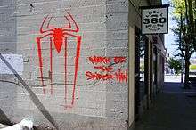 Big Cola was reported to enter a deal for promoting the film.[142][143] The Kellogg Company and the Keebler Company built marketing campaigns around clips from the film.[144] Sony launched a new augmented reality mobile application for the film using Qualcomm's Vuforia platform. Sony's Dwight Caines felt that the "use of augmented reality technology is a fun way of embracing the 3D aspects of the movie while nurturing the playful kid inside all of us who wants to collect items from their favorite superhero character to share with their friends and family."[145] Twizzlers challenged fans nationwide to help the hero build a virtual web of Twizzlers Twists to unlock prizes and exclusive content.[146] D-Box Technologies provide motion simulation for the film in select theaters.[147]