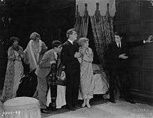 Leni used similar camera effects found in German expressionist films such as The Cabinet of Dr. Caligari to set the atmosphere of The Cat and the Canary. The film opens with a hand wiping cobwebs away to reveal the title credits. Other effects include "dramatic shadows, portentous superimpositions and moody sequences in which the camera glides through corridors with billowing curtains."[3] Film historian Jan-Christopher Horak explains that a "matched dissolve from an image of the mansion and its oddly shaped towers to the oversized bottles of medicine that the dearly departed has been forced to consume functions as a double image of a prison, dwarfing the old man who sits alive with his will in a corner of the frame."[20] Leni worked with the cast to add to the mood created by lighting and camera angles. Cinematographer Gilbert Warrenton recalled that Leni used a gong to startle the actors. Warrenton mused, "He beat that thing worse than the Salvation Army beat a drum."[21]