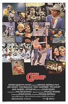 The Champ is a 1979 American drama sports film directed by Franco Zeffirelli and a remake of the 1931 Academy Award-winning film of the same name which was directed by King Vidor. It stars Jon Voight, Faye Dunaway, and Ricky Schroder. It is also the final film for actress Joan Blondell to be released during her lifetime. Blondell, who died from leukemia on Christmas Day eight months later, also starred in two other films that were released after her death.