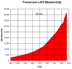 As of June 24, 2016, The Church of Jesus Christ of Latter-day Saints reported 49,576 members, 12 stakes (with stake center inside the state), 105 congregations (77 wards[1] and 28 branches[1]), 2 missions, and 2 temples in Tennessee.[2]