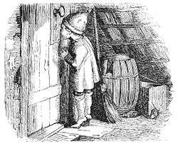 "The Goblin and the Grocer" (Danish: Nissen hos Spekhøkeren) is a fairy tale by Danish poet and author Hans Christian Andersen about a goblin who must choose between poetry or a Christmas treat from a grocer. The tale was first published November 30, 1852, and republished several times during the author's lifetime. Andrew Lang included it in The Pink Fairy Book (1897). The title is sometimes mistakenly translated into English as "The Goblin and the Huckster".