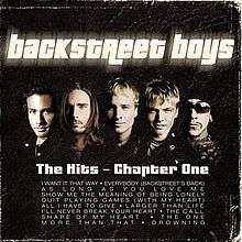 The Hits – Chapter One, also known as Greatest Hits – Chapter One internationally, is the first greatest hits compilation released by American band, the Backstreet Boys. The album features fifteen of the group's classic hits, as well as one new song, "Drowning". "Drowning" was the album's only single, peaking at #4 on the UK Singles Chart and making the top 10 in most countries. A video album, featuring all of the videos from the release, was made available around the same time as the album. The album went to number 4 on the US Billboard 200 chart and was certified platinum by the RIAA. Which makes this their second number four album in the USA following Backstreet Boys in 1997 and their fourth consecutive top ten album in the USA following Black & Blue in 2000.