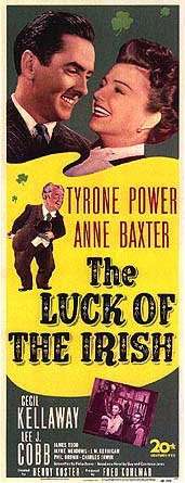 The Luck of the Irish is a 1948 film with Tyrone Power, Anne Baxter, Lee J. Cobb, Cecil Kellaway, and Jayne Meadows.[1]