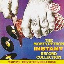 The Monty Python Instant Record Collection is actually the title of two compilation albums released by the Monty Python troupe, the first in the UK in 1977, and the other in the US in 1981. It was billed as "the pick of the best of some recently repeated Python hits again, Vol. II." The record sleeve's original design was done by Terry Gilliam. It featured packaging that folded out into a cardboard box resembling a large stack of record albums (all containing spoofs of popular album names).