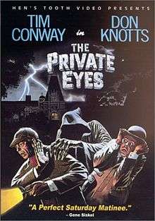 The Private Eyes is an 1980 American comedy mystery film starring Tim Conway and Don Knotts. The pair play bumbling American detectives who (inexplicably) work for Scotland Yard, obvious parodies of Sherlock Holmes and Doctor Watson. It was filmed at Biltmore Estate in Asheville, North Carolina.