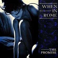 "The Promise" is a song by the British band When in Rome. First released in 1987 on 10 Records,[3] the song is the lead single from their self-titled debut album. It was written by all three band members: Clive Farrington, Andrew Mann and Michael Floreale. The song was released in the U.S. in 1988 and made the top 20 on the Billboard Hot 100 chart. It is the band's biggest commercial hit.