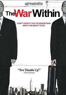 The War Within is a 2005 American drama film directed by Joseph Castelo and written by Ayad Akhtar, Castelo, and Tom Glynn. Distributed by HDNet Films and released by Magnolia Pictures, the film stars Ayad Akhtar, Firdous Bamji, Nandana Sen and Sarita Choudhury. The War Within premiered at the 2005 Toronto International Film Festival.[1]