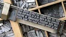 "The quick brown fox jumps over the lazy dog" is an English-language pangram—a phrase that contains all of the letters of the alphabet. It is commonly used for touch-typing practice. It is also used to test typewriters and computer keyboards, show fonts, and other applications involving all of the letters in the English alphabet. Owing to its brevity and coherence, it has become widely known.