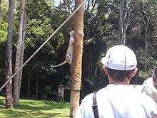 Tiger presentations are performed twice daily in the main exhibit. Guests can watch as the tigers perform many natural behaviours which showcase their agility. Throughout the presentation the tigers climb 20-foot (6.1 m) trees and jump up to 10-foot (3.0 m) into the air.[26][27] In 2013, Cub College will feature some of the younger tigers performing in the presentation.[28]