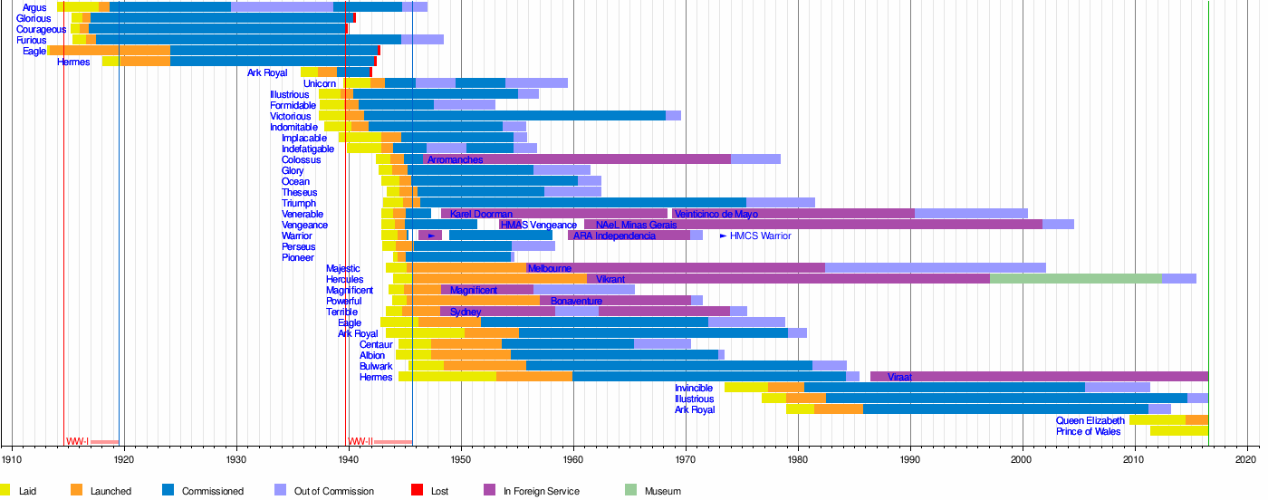 The following is a Timeline of fleet aircraft carriers of the Royal Navy of the United Kingdom.