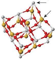 Chemically, zircon is a particularly useful mineral because of its ability to incorporate many trace elements. Many of these elements can be used for radiometric dating to provide an age for the crystal. It is known to exchange uranium, thorium and rare earth elements (REE) such as yttrium,[4] and lutetium. However, the chemical potential energies of these REE substitutions are not well understood, so they are not suitable for determining crystallization temperatures. Titanium is also incorporated into zircon, and its exchange rates has been studied in detail. Ti4+, a tetravalent ion, can replace Zr4+ or Si4+ in a temperature dependent mechanism. For zircons in the presence of TiO2, i.e. the mineral rutile, this substitution process is common and can be measured.[1] Zircon is also useful because its incorporation of other elements like uranium, lutetium, samarium,[5] and oxygen[6] can be analyzed to provide further insight into the age and conditions the crystal grew under.