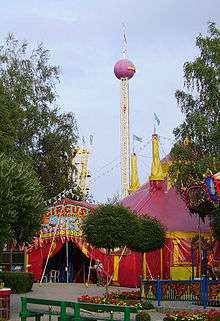 The 95 meter high gyro tower has the claim of being the tallest transportable amusement ride in the world. However, the tower hasn't been moved in recent years, and is now placed permanently in the amusement park Freizeit-Land Geiselwind. Its circular gallery can accommodate up to 132 people, and can be raised and rotated to provide a spectacular view.