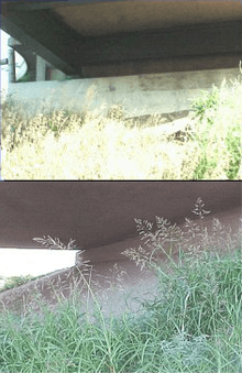 However, in the El Dorado tornado, several unique factors came together to protect the film crew and others seeking shelter under the bridge.[8] The tornado did not pass directly over the filmed bridge, but instead tracked slightly south of the area, exposing the people to winds less damaging than those in the tornado core. The overpass had an unusual design which included a hollow crawlspace at the top of the embankment, which was large enough to allow people to crawl inside and hold the exposed girders against the wind. This design also allowed for added protection against high-speed debris.[8]