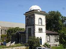 The Toronto Magnetic and Meteorological Observatory is a historical observatory located on the grounds of the University of Toronto, in Toronto, Ontario, Canada. The original building was constructed in 1840 as part of a worldwide research project run by Edward Sabine to determine the cause of fluctuations in magnetic declination. Measurements from the Toronto site demonstrated that sunspots were responsible for this effect on Earth's magnetic field.[1] When this project concluded in 1853, the observatory was greatly expanded by the Canadian government and served as the country's primary meteorological station and official timekeeper for over fifty years. The observatory is considered the birthplace of Canadian astronomy.[2]