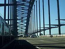 Traffic crossing the Sydney Harbour Bridge on the Bradfield Highway in Sydney.