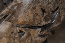 In the evening of 27 May 2013, Michele Lundstad, an amateur paleontologist of Dutch descent, with her husband Blaine Lundstad stumbled upon some bones in the "East Pasture", part of the land of farmer Lige M. Murray, fifty kilometres south of Jordan, Montana. Local fossil hunter Clayton "Dino Cowboy" Phipps confirmed that it was a tyrannosaur skeleton. Rumours of the find reached the BHI, which informed Naturalis. In August 2013, a team of paleontologists from the Naturalis Biodiversity Center, now headed by Anne Schulp, again travelled to the USA. From 29 August to 9 September they unearthed a big and remarkably complete Tyrannosaurus rex specimen.[7] The fossil was found in the Hell Creek Formation. The pattern of geomagnetic reversal showed it had an age of at least 66.4 million years. The excellent preservation had been caused by the skeleton being surrounded by a three metres thick sandstone lens with a high chalk content, neutralising damaging acids. The Black Hills Institute collaborated with the team in the excavation, which was also assisted by Phipps and the Lundstads. On 5 September, paleontologist Philip Manning of the University of Manchester performed a lidar-laserscan of the site surface to precisely determine the position of all bones.[8]