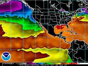 - ↑ R. Legeckis (1977). "Long waves in the eastern equatorial Pacific Ocean: a view from a geostationary satellite". Science. 197 (4309): 1179–81. Bibcode:1977Sci...197.1179L. doi:10.1126/science.197.4309.1179. PMID 17753335.