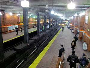 Tufts Medical Center station viewed from the mezzanine, looking outbound | ||||||||||||||||||||||