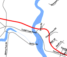 Tuthilltown Bridge is located in the Town of Gardiner in Ulster County, New York, United States, approximately 1 miles (1.6 km) west of the eponymous hamlet. It carries US 44/NY 55 across the north-flowing Wallkill River just downstream from where it is joined by the Shawangunk Kill, its largest tributary. It is a steel through truss bridge built in 1938 and reconstructed in 1993[1]